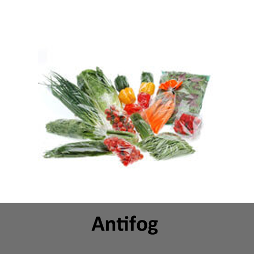 | 25 – 40 µ | Heat Sealable one or two side treated, high heat seal strength Antifoging film | Antifog film for green vgetables / fruit / meat packaging where packged food is required to be kept under refrigeration or elevated temperatures. |